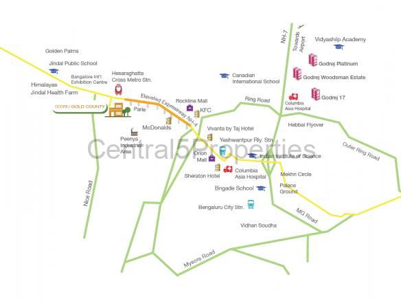 Location Advantages: Godrej Gold County is strategically located and provides direct connectivity to nearly all other major points in and around Bangalore. It is one of the most reputable address of the city with easy access to many famed schools, shopping areas, hospitals, recreational areas, public gardens and several other public amenities.